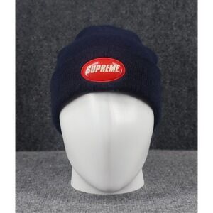 Supreme Knit Winter Beanie Hat Adult Unisex One Size Navy Blue Bubble Logo EUC