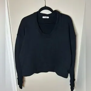 PERFECTWHITETEE Janie Fleece U Neck Black Sweatshirt. Size small.