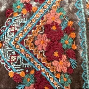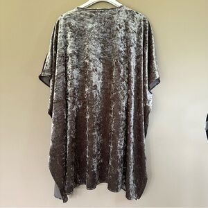 Andree Embroidered Crushed Velvet Kimono Boho Duster Women L Grey Floral Hippie