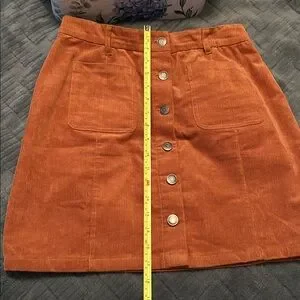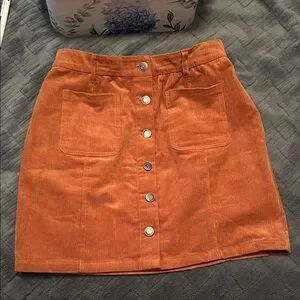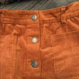 Stylish Grace & Lace corduroy mini skirt with button-front design. Features a warm orange hue. Ideal for casual outings. Size 8
