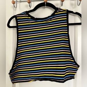 Adam Selman Sport striped sleeveless crop top. High crew neck. Low open arm muscle tank.