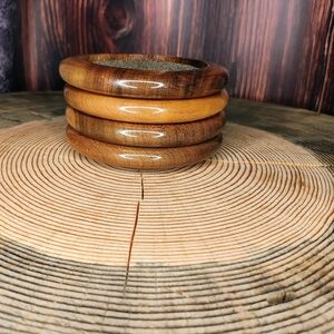 Enhance your home decor with this very MCM set of wooden coasters. Featuring a beautiful blend of brown and tan hues, these coasters add a touch of natural charm to any setting. Perfect for protecting your surfaces while adding style.
