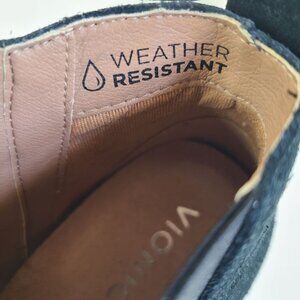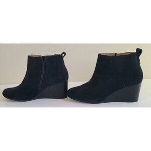 These Vionic ankle booties offer a sleek look with their black suede finish and wedge heel. I wore them once only, they are in excellent condition, and come from a smoke free, pet free home.