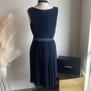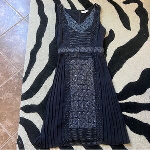 Tory Burch Silk Beaded Sequin Luxe Pleated Cocktail Dress in Navy Size 4