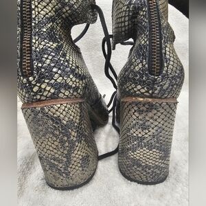 Freebird Joyce Green Snake Size 9 Gorgeous shoes! All leather green snake embossed, EUC, soles show wear but otherwise looking just about new, please see pics! I am a 9-9.5 & Freebird 9s always fit me perfectly. These, however, are a bit tight. I was able to wear them briefly for a special event but they are too tight on me for day to day wear. I would say they would best fit an 8.5. Feel free to ask any questions & please check out the rest of my closet for more MAC KVD ABH URBAN DECAY FENTY MORPHE HUDA BEAUTY TARTE SMASHBOX TOM FORD CLINIQUE ESTĒE LAUDER BOBBI BROWN SEPHORA ULTA BLACK MOON INDIE BRANDS FREEBIRD A.S.98 & more fun finds- bundle & save! Thanks for shopping!