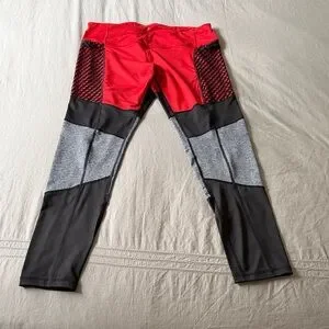 REFLEX Large sporty tights, red m black grey and mesh Colorblock Leggings