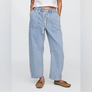 New with tags TikTok viral Gap Mid Rise Super Soft Pull-On Barrel Jeans pants in Light Wash.