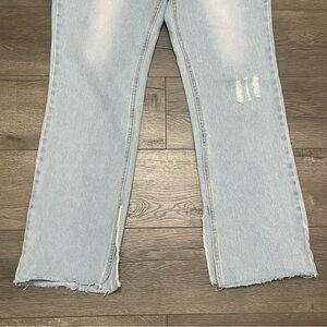 Avec Les Filles Distressed Jeans with Slit Hem in Powder Blue Light Wash Sz 30