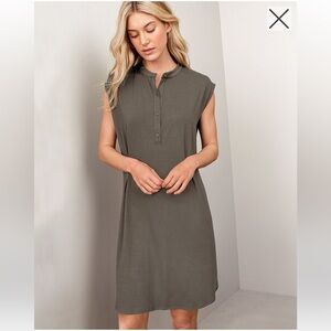 The shirtdress goes sleek, in polished, jersey-knit viscose with a touch of comfy stretch. Featuring a mandarin collar and a button placket, with sleeveless ease to add a sweater or jacket when there's a chill in the air.