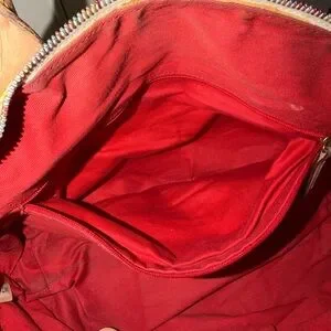 Interior: Red fabric lining shows visible staining and discoloration throughout (multiple pictures).