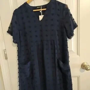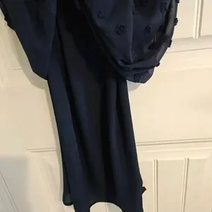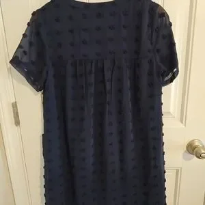 Elegant navy dress by MIHOLL with a textured design. Features short sleeves.