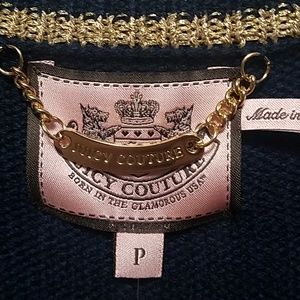 NWT Juicy Couture Regal Boyfriend Blue and Gold Cardigan Size Petite w Pockets