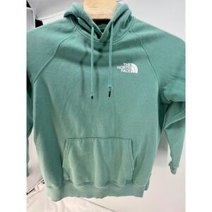 The North Face Women Hooded Sweatshirt Teal Green Logo Pullover Size L