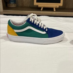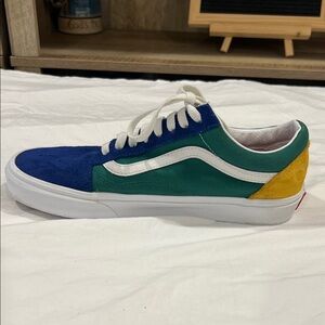 Vans Old Skool Colorblock Sneakers Blue Green Yellow Suede Canvas Low Top