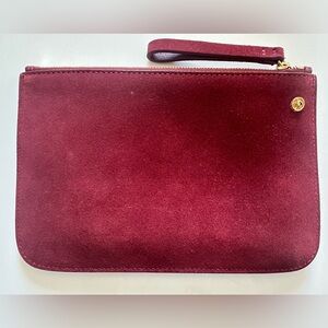 Elegant red crossbody bag. Sleek design with adjustable strap. Perfect for any occasion. Includes pouch.