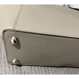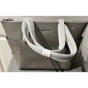 Michael Kors Charlotte Pearl Grey Top Zip Leather Tote Handbag New