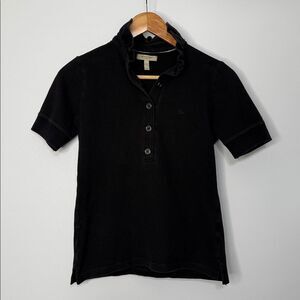 Burberry Black Ruffle Collar Polo Shirt Size Small