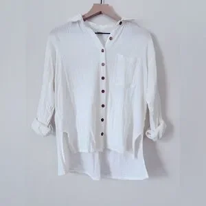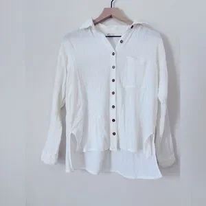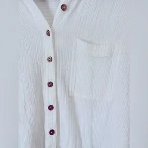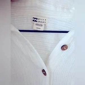 Lightweight, breezy Billabong beach shirt in classic white. Made from a soft, textured gauze fabric that’s perfect as a swim cover-up or casual summer layer. Features a relaxed fit, button-front closure, chest pocket, and natural wood-style buttons.