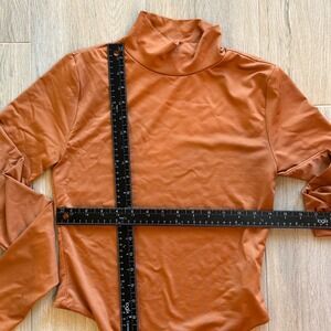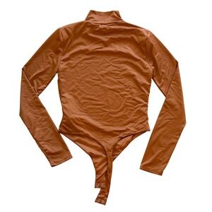 Forever 21 Long Sleeve Mock Neck Thong Bodysuit Cinnamon Brown Size L