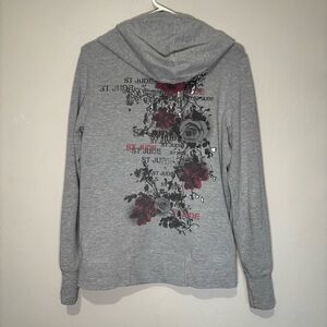 Y2K DKNY Grey Floral Print Hooded Jacket Size Small St. Jude Hospital