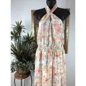 Maurices maxi dress, floral sundress women, boho maxi dress, halter neck dress, women summer dress medium, vacation dress, beach maxi dress, resort wear dress, flowy maxi dress, pastel floral dress