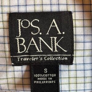 Jos. A. Bank White Blue Green Plaid Shirt Size Small Short Sleeve Button Down