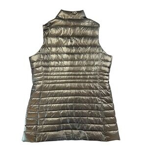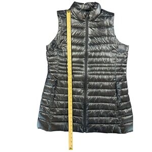 Lands End Black Puffer Vest Women's L Lightweight Full Zip Stand Collar Silver