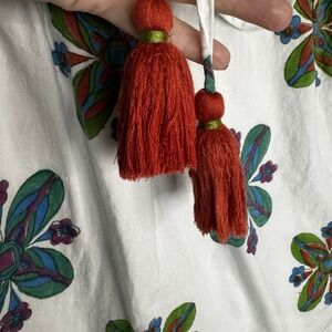 Victoria Dunn Middleton Blouse XS White Piccolo Blu Floral Tassel Top