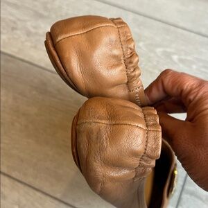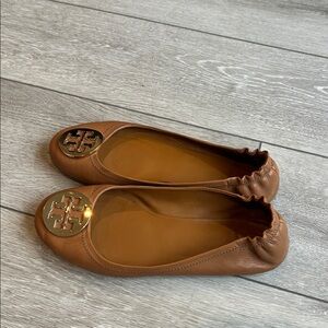 Tory Burch Mini travel Brown Naya leather Flats with gold logo size 10
