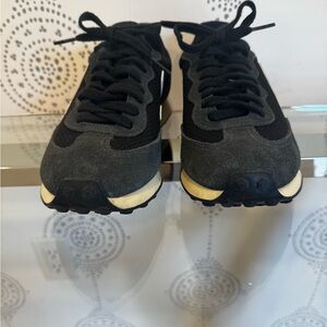 Sleek black sneakers with white detailing. Perfect for casual outings. Worn once.