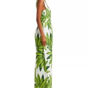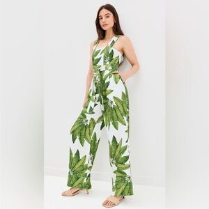 🌿 FARM Rio Palm Fan Wide Leg Jumpsuit w/ Contrast Piping Large 12 14 NWT