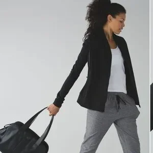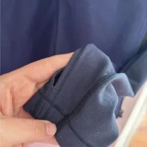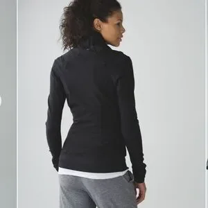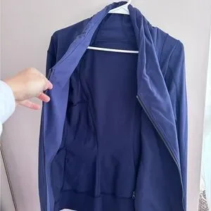 Chic navy jacket with a modern fit. Ideal for yoga, exercise or everyday style. Double zippers making it fitted and extra warmth! Finger holes on both sides