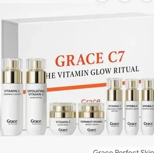 Experience radiant skin with the Grace C7 Vitamin Glow Ritual. This skincare set, in elegant white and vibrant orange, is designed to enhance your natural glow. Perfect for daily use.
