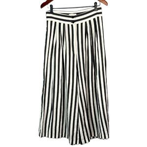 Coastal H&M Striped Linen Cropped Wide Leg High Waist Culottes Pants Pleated 10