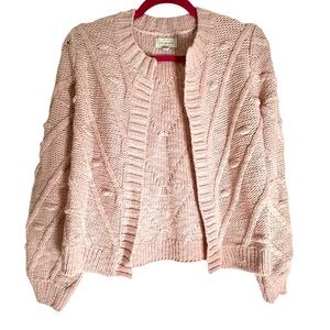 Lucky Brand Blush Pink Cable Knit Open Front Cardigan Sweater XS Cozy Chunky