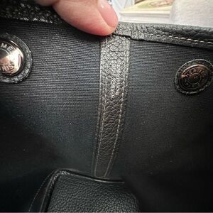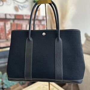 Hermès Garden Party MM, Hermès tote bag, black Hermès handbag, Hermès canvas tote, authentic Hermès bag, luxury work bag, Hermès black leather tote, French designer bag, Hermès handbag, luxury fashion