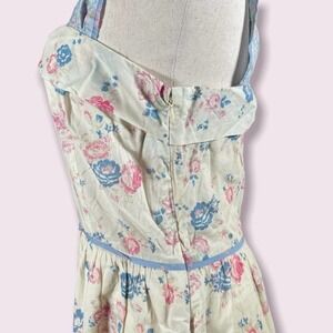 A signature LoveShackFancy silhouette, the Carmine dress blends vintage romance with effortless wearability. Designed in the brand’s pastel Lemon Blueberry floral, this piece features a softly structured bodice, thick straps, and a flattering fixed waist that gives shape without feeling restrictive.