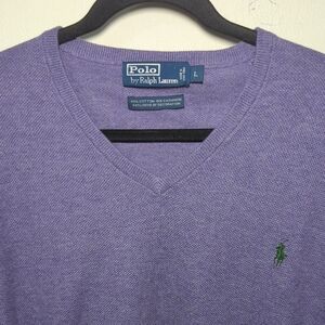 Polo Ralph Lauren Cotton Cashmere V-Neck Sweater Purple Pony Logo Men's Size L