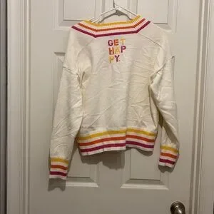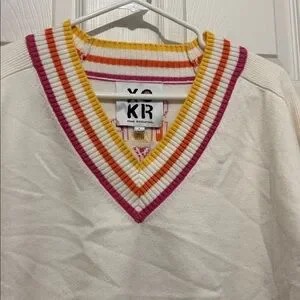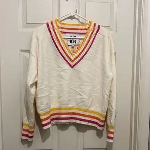 Kerri Rosenthal “Get Happy” Super Soft Knit Striped V-Neck Sweater -