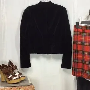 VTG American Rag Black Cotton Velveteen Cropped Lined Jacket