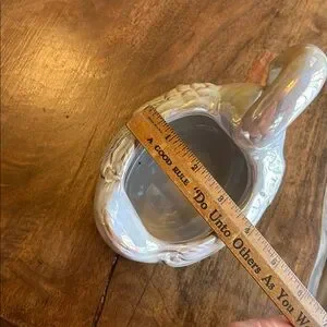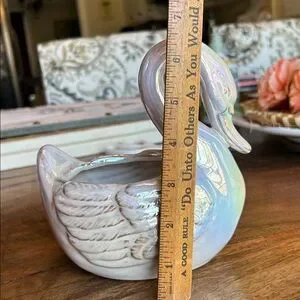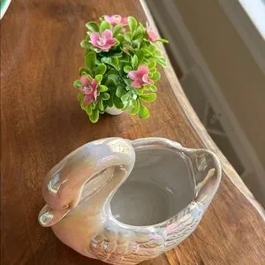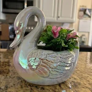 Beautiful colors on this majestic ceramic Swan. You can remove faux plant and put whatever else fits. I have two but can only ship them separately b/c of weight. This listing is for ONE only.