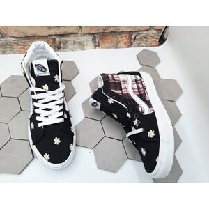 Vans Womens Sk8 Hi Floral Plaid Patchwork Flower Old Skool Sz 8.5 Black White