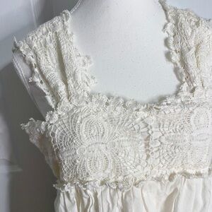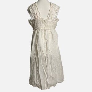 Adrianna Papell Cream Cotton Midi Dress with Lace Detail on Top