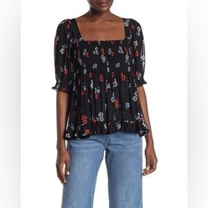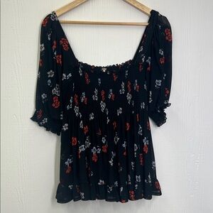 Free People - Delta Dawn Midnight Combo Colorful Floral Mesh Blouse Size Medium