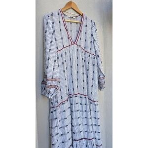 Zara Striped Embroidered Tiered Maxi Dress - Boho Coastal Blogger Relaxed Fit S