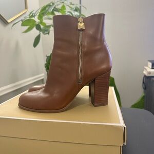 Michael Kors Soft Leather Luggage Ankle Booties with Gold Zipper. Size 7.5.