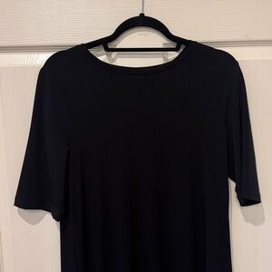 Chicos elbow sleeve black midi dress, medium, size 1