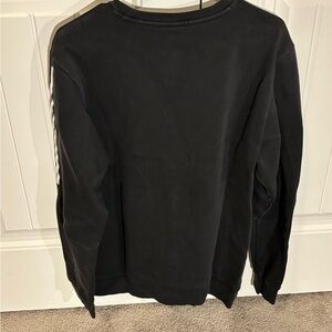 Classic black crewneck with iconic Adidas logo. Features white stripe accents on sleeves. Ideal for casual wear.