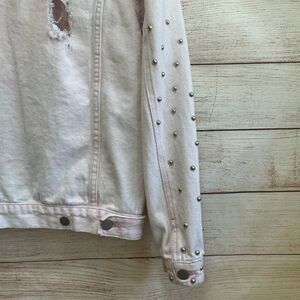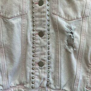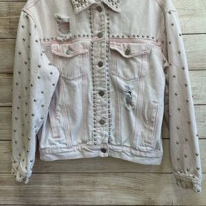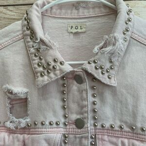 EXCELLENT CONDITION POL DISTRESSED AND STUDDED JEAN JACKET IN PINK