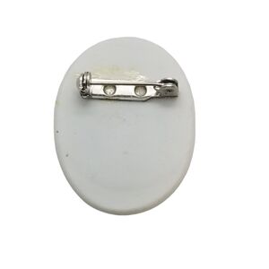 Lovely vintage oval porcelain pin with handpainted pink flowers and vines. The pin is signed D.H. Pin is in good condition but does have some yellowing to porcelain as seen in pics. Pin measures 1-5/8 inches tall and 1-1/4 inches wide.